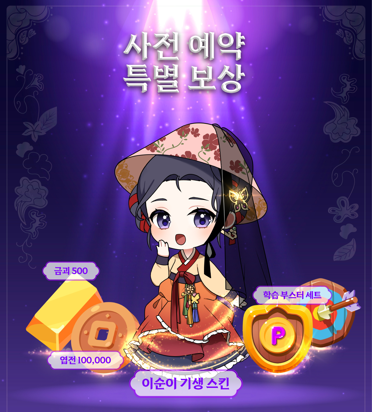 ※ 본 이벤트는 만 14세 미만은 참여할 수 없습니다.※ 사전등록 보상은 그랜드 오픈 후 일괄 지급될 예정입니다.※ 보상은 계정 당 1회씩만 지급되며 중복 지급되지 않습니다.※ 보상은 지급 시점으로부터 30일간 수령 가능하며, 이후엔 삭제되어 수령할 수 없습니다.